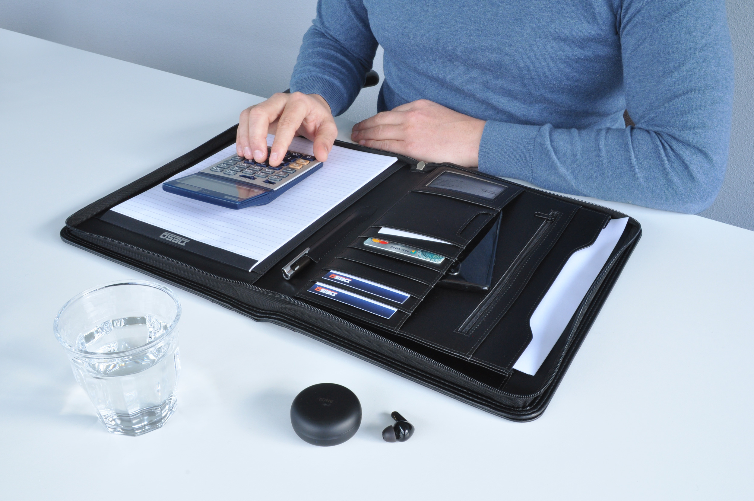 Tato Business Classy konferenční složka je ručně vyrobená z vysoce kvalitní syntetické kůže v minimalistickém designu. ? 13 kapes a přihrádek – ideální pro pera, vizitky a dokumenty ? Speciální kapsa na tablet (lze použít i pro dokumenty formátu A4) ? Uzavíratelná kapsa na zip pro bezpečné uložení cenností ? 8 slotů na karty ? Skrytá kapsa pro diskrétní uložení dokumentů ? Obsahuje poznámkový blok A4 (20 listů) Business Classy konferenční složky spojují praktickou funkčnost s luxusním minimalistickým designem, což zajišťuje profesionální a elegantní vzhled při každé příležitosti. Vnitřní uspořádání je promyšleně navrženo tak, aby byly všechny vaše dokumenty přehledně uspořádány pro schůzky a jednání. Celoplošné zipové uzavření poskytuje maximální bezpečnost, takže si složku můžete vzít kamkoli bez rizika ztráty důležitých materiálů..