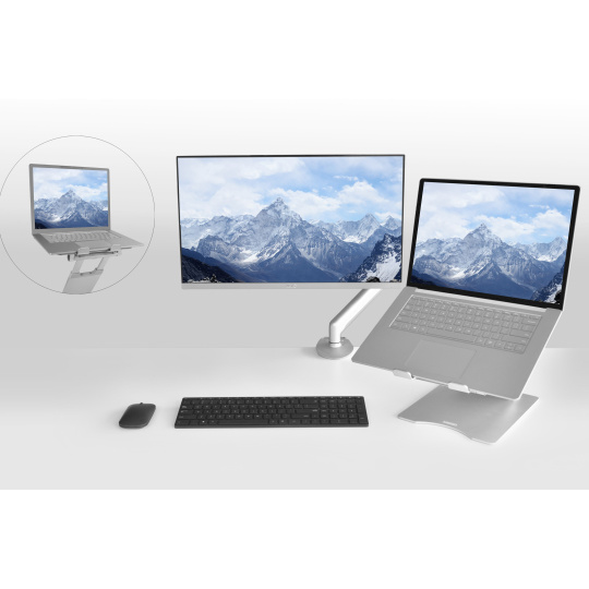 Tento plně nastavitelný stojan na notebook vám umožní umístit obrazovku do úrovně očí, ať už sedíte, stojíte nebo se nacházíte mezi těmito polohami. Je ideální pro zajištění ergonomicky správného držení těla při práci, jako řečnický pult při prezentacích nebo dokonce jako stojan na kuchařku při vaření. ? Plně nastavitelný jediným tlačítkem: snadná úprava výšky od 30 do 450 mm ? Zvedá obrazovku až o 45 cm pro optimální komfort sledování ? Platforma nastavitelná až do úhlu 70 ° pro nejlepší pozorovací úhel ? Výřezy v konstrukci podporují proudění vzduchu a ochlazují notebook ? Vyroben z pevné a odolné hliníkové slitiny ? Silikonové podložky a nožky pro stabilitu a ochranu proti skluzu S DESQ stojanem na notebook nastavíte displej do ideální výšky, což podporuje zdravé a ergonomické držení těla a pomáhá předcházet bolesti zad, krku a únavě očí..