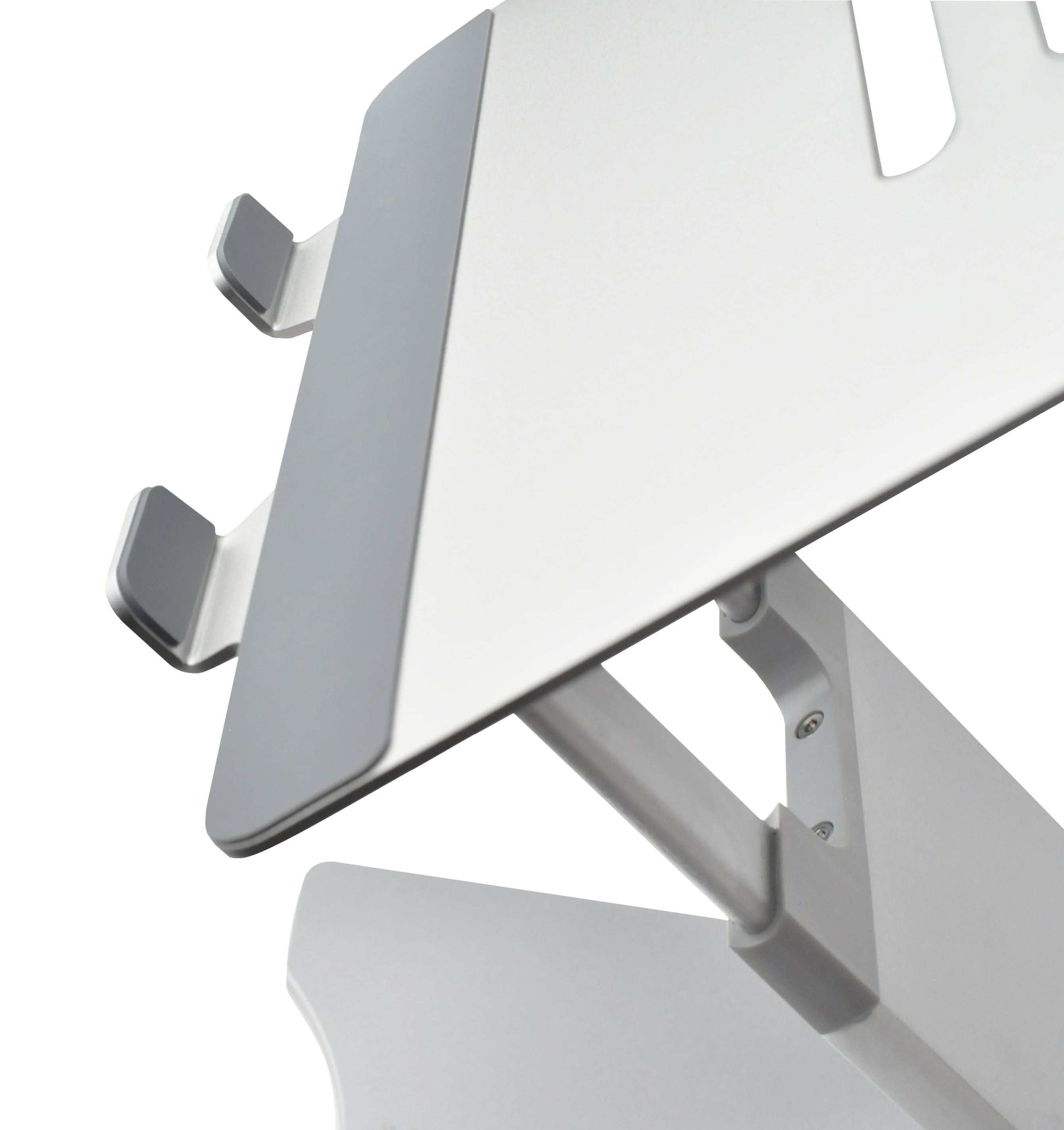Tento plně nastavitelný stojan na notebook vám umožní umístit obrazovku do úrovně očí, ať už sedíte, stojíte nebo se nacházíte mezi těmito polohami. Je ideální pro zajištění ergonomicky správného držení těla při práci, jako řečnický pult při prezentacích nebo dokonce jako stojan na kuchařku při vaření. ? Plně nastavitelný jediným tlačítkem: snadná úprava výšky od 30 do 450 mm ? Zvedá obrazovku až o 45 cm pro optimální komfort sledování ? Platforma nastavitelná až do úhlu 70 ° pro nejlepší pozorovací úhel ? Výřezy v konstrukci podporují proudění vzduchu a ochlazují notebook ? Vyroben z pevné a odolné hliníkové slitiny ? Silikonové podložky a nožky pro stabilitu a ochranu proti skluzu S DESQ stojanem na notebook nastavíte displej do ideální výšky, což podporuje zdravé a ergonomické držení těla a pomáhá předcházet bolesti zad, krku a únavě očí..
