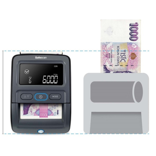 Safescan 155-S využívá nejnovější technologii detekce padělků. Podrobně zkoumá sedm pokročilých bezpečnostních prvků zapracovaných do dnešních měn: infračervený inkoust, magnetický inkoust, kovový proužek, velikost, barva, tloušťka a vodoznak. - Rychlý a přesný detektor padělků bankovek CZK, EUR, PLN, RON, BGN a HUF - Možnost upgrade pomocí MicroSD karty nebo aktualizačního kabelu při vydání nových sérií bankovek - Jednoduchá obsluha - Na displeji detektoru se zobrazuje celková hodnota kontrolovaných bankovek a počty jednotlivých nominálií, dle použitého režimu - Sedminásobná detekce: infračervené vlastnosti bankovek, magnetické a kovové prvky, vodoznak, rozměry, tloušťka a barva - Zvukové a vizuální upozornění při podezření na padělek - Velký a jasný 3,8'' LCD displej - Rychlost detekce: do 1 s - Automatický přechod do pohotovostního režimu po 30 sekundách - Možnost provozování zařízení na dobíjecí baterii s výdrží až 30 h – k dokoupení pod kódem 112-0410 - Kompaktní rozměr: 156 x 120 x 76 mm - Váha: 660 g - Barva: černá - AC/DC adaptér (220 – 240V) - Možnost dokoupení zásobníku SAFESCAN RS-100 s katalogovým číslem 112-0695, díky kteréme se z detektoru stane kompaktní počítačka pro 20 kusů bankovek. - K tomuto produktu můžete získat prodlouženou záruku. V případě, že se do 30 dnů od nákupu zaregistrujete na stránkách https://www.safescan.com/en/myAccount/login/ prodloužíte záruku na 36 měsíců. Bez registrace platí standardní záruka 24 měsíců..