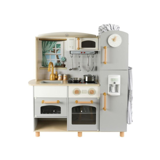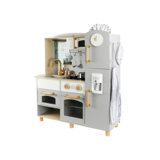 Stylová dětská kuchyňka doplněná o bohaté příslušenství a textilní kuchařský set ZDARMA, okouzlí malé kuchařky i kuchaře. Dřevěná kuchyňka ve skandinávskému stylu, se základními spotřebiči, parádními doplňky a zvukovými efekty, je vhodná do každé místnosti. Díky této krásné edukativní hračce si děti vyzkouší vaření, pečení, chystání pokrmů, umývání nádobí a další činnosti bezpečným dětským způsobem. Při hře v dřevěné kuchyňce děti zdokonalí své dovednosti a ještě si užijí spoustu zábavy..