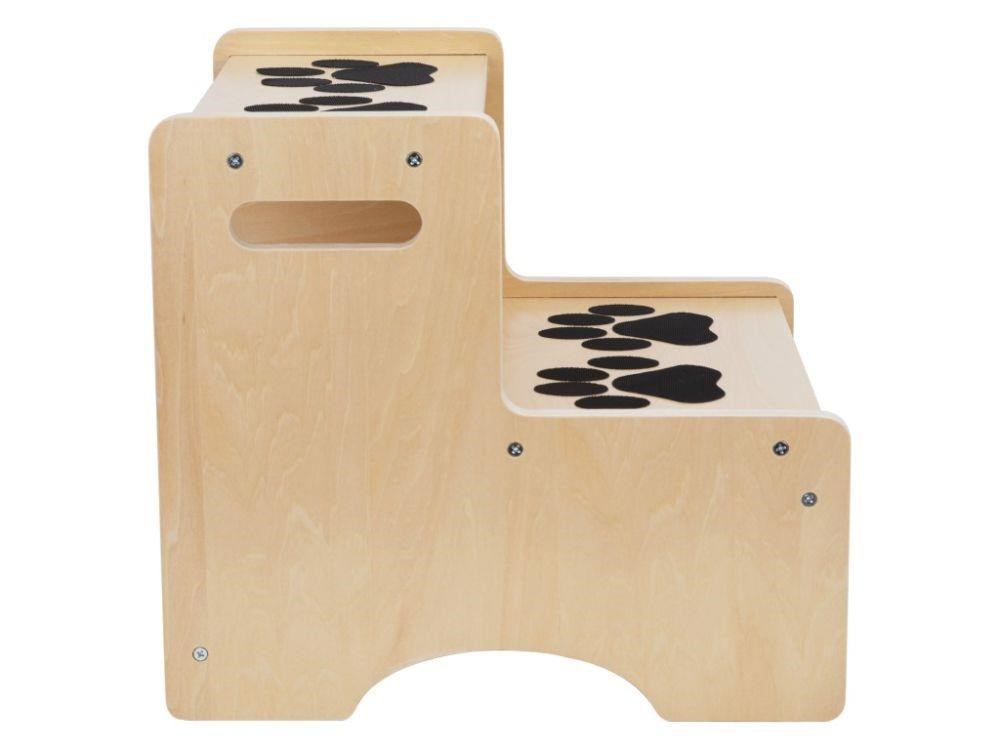 Dětské schůdky v přírodním provedení, s možností dozdobení roztomilými tlapičkami (nálepkami), mají v domácnosti všestranné využití. Dřevěné schůdky umožní dětem dosáhnout do umyvadla, na stůl, do regálku nebo do knihovničky. Děti si mohou samy podat kartáček na zoubky, oblečení, hračky a tím se učí samostatnosti. Dětské schůdky s protiskluzovou spodní stranou jsou bezpečným a snadno přenosným pomocníkem do domácnosti..