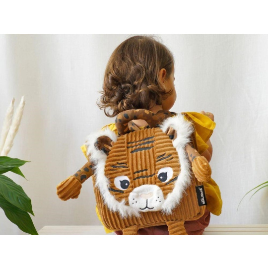Dětský batůžek z úžasně hebkého materiálu je ideálním prvním batůžkem pro holčičky i kluky. Samozřejmostí na batohu tygr jsou nastavitelné ramenní popruhy, polstrovaná rukojeť, zapínání na zip i jmenovka uvnitř batůžku..
