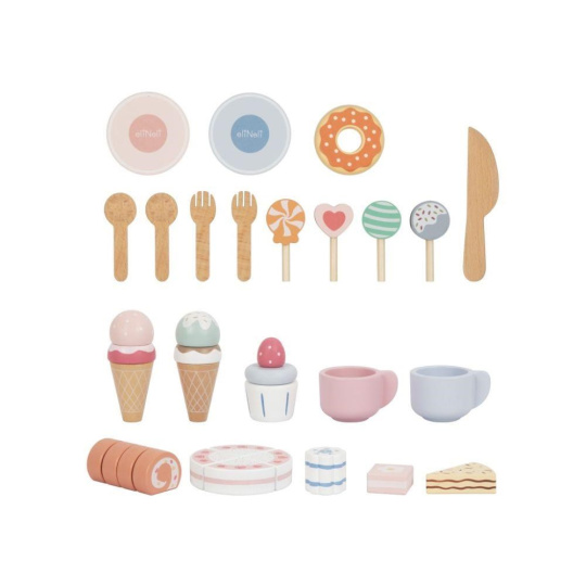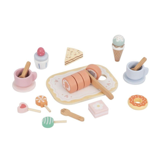 Čajový servis spolu s krájecím dortem a dalšími lahodně vypadajícími dobrotami, vše uložené v praktickém boxu, potěší každé dítko. S boxem 3v1 je uspořádání čajového dýchánku nebo posezení u kávy hračkou a velkou zábavou. Obsah boxu je skvělým doplňkem k dětské kuchyňce nebo obchůdku..