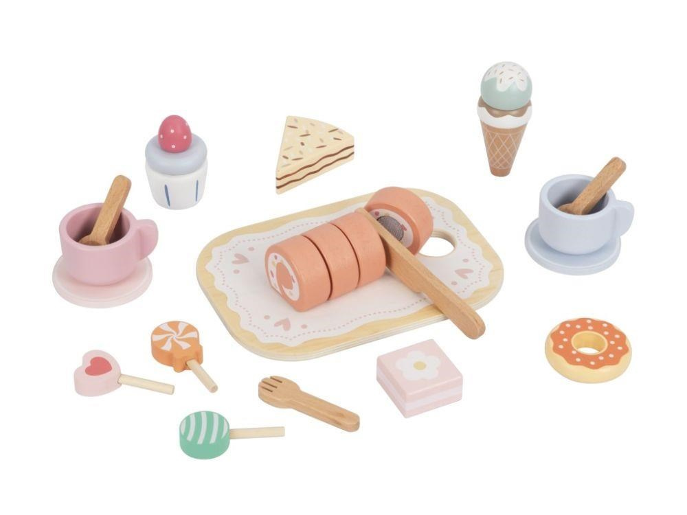 Čajový servis spolu s krájecím dortem a dalšími lahodně vypadajícími dobrotami, vše uložené v praktickém boxu, potěší každé dítko. S boxem 3v1 je uspořádání čajového dýchánku nebo posezení u kávy hračkou a velkou zábavou. Obsah boxu je skvělým doplňkem k dětské kuchyňce nebo obchůdku..