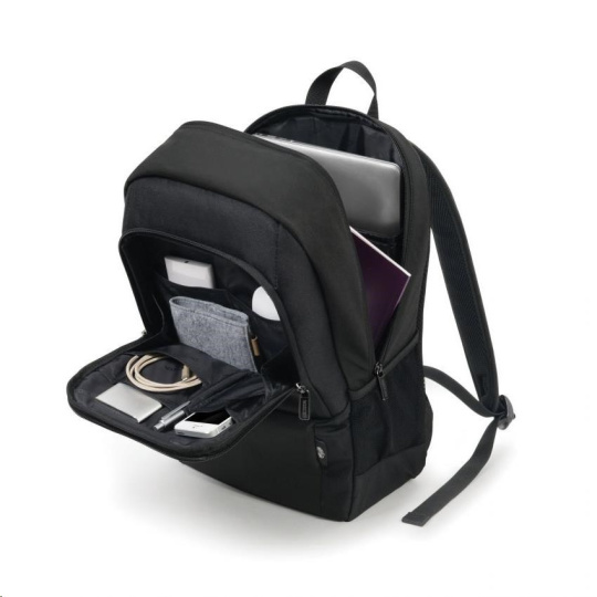 This compact backpack offers ideal protection for laptops between 13 and 14.1" thanks to its high-density foam (HDF) padding. Its lightweight design guarantees flexible mobility. The spacious main section is divided so that documents and accessories can be stored separately. The front pocket has practical smaller compartments so you can organise smaller items like your smartphone, pens or chargers. There is space for your water bottle or umbrella in the easily accessible mesh side pockets. You can therefore ensure that everything you need is always to hand. The backpack's ergonomic padding makes it comfortable to wear on your back and the shoulder straps can also be adjusted for further comfort. The Eco Backpack BASE is therefore perfect for you if you are always on the go and want to support the recycling of PET bottles with an eco-friendly bag.