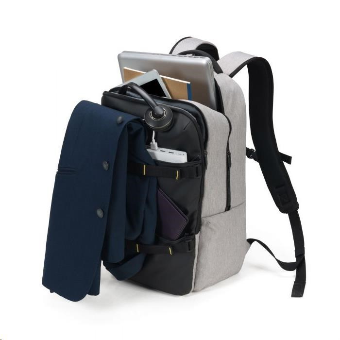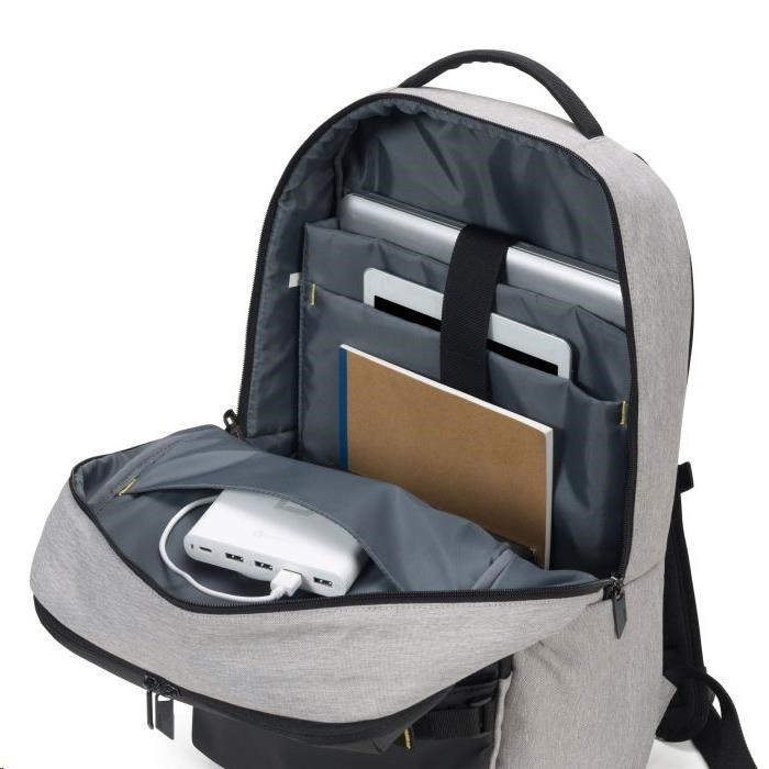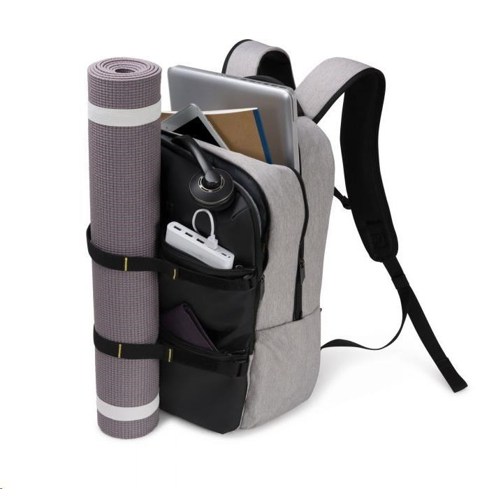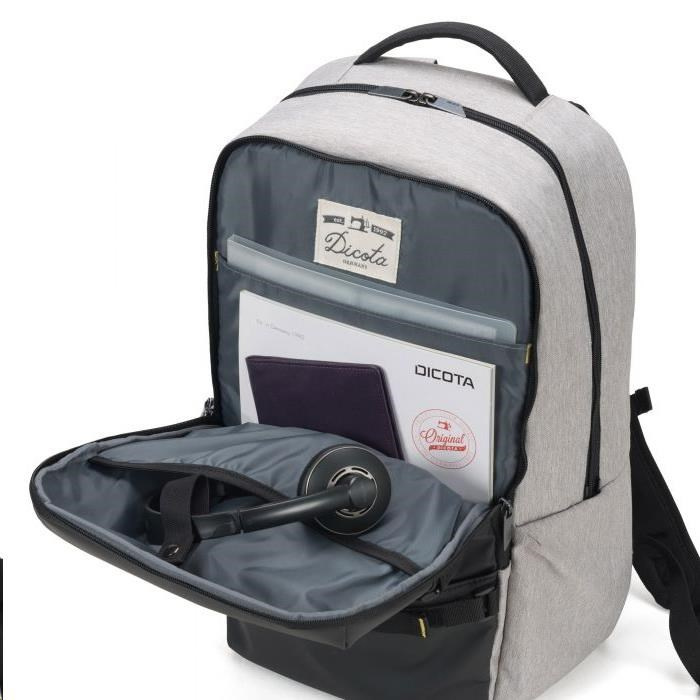 From yoga classes to the office. MOVE is designed for daily use. Comfortable thanks to its ergonomic back cushioning and cushioned shoulder straps with an adjustable chest belt. Perfectly manoeuvre your backpack thanks to the two handles for carrying. The fabric is made of water-repellent materials but in case of thunderstorms, the backpack also includes a rain cover with a reflective DICOTA logo. The primary storage area contains a notebook compartment cushioned with High Density Foam (HDF), a padded slip pocket for tablets up to 10.5 inches, a divider for documents and an elastic mesh pocket to hold your drink bottle. The second main compartment contains dividers for headphones and folders.