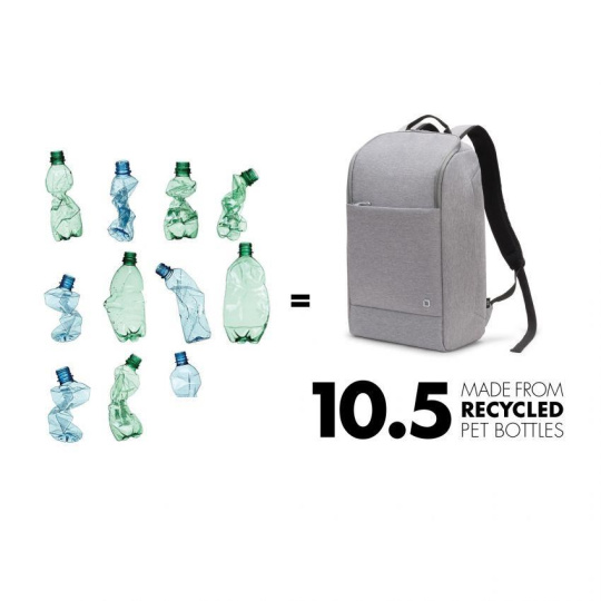 Laptop Backpack Eco MOTION 13 - 15.6" Light Grey Stylish notebook backpack with protective padding and lots of storage space Today's actions shape tomorrow's world. Which is why, here at DICOTA, we are dedicated to developing environmentally friendly solutions and therefore make all the items in our ECO collections out of sustainable, recycled PET. We reuse up to 31 PET bottles, so you will receive an environmentally friendly product with a life-long guarantee. Our PET products also have the quality, look and finish that you know and love. Specifications Art.no.: D31876-RPET EAN: 7640186418218 Weight: 0.75 kg Material: 600D RPET Polyester Warranty: Lifetime / 30 years Dimension: 325 x 475 x 150 mm Max. Device dimensions: 385 x 30 x 265 mm Characteristics • Made of 10.5 recycled PET bottles • 23 litre storage space • Padded notebook compartment with high density foam (HDF) • Slip pocket for tablets up to 12.9" • Spacious main section with compartments for documents and accessories • Front pocket with storage space for mobile accessories • Mesh pocket for water bottle or umbrella inside • Quick access zipper on the side.