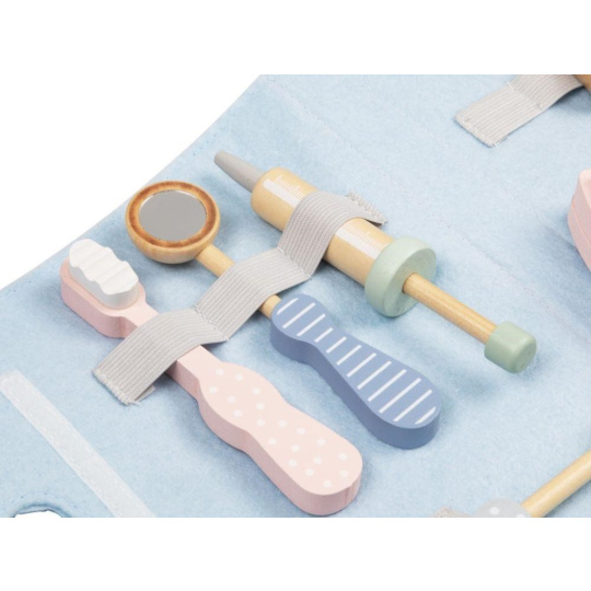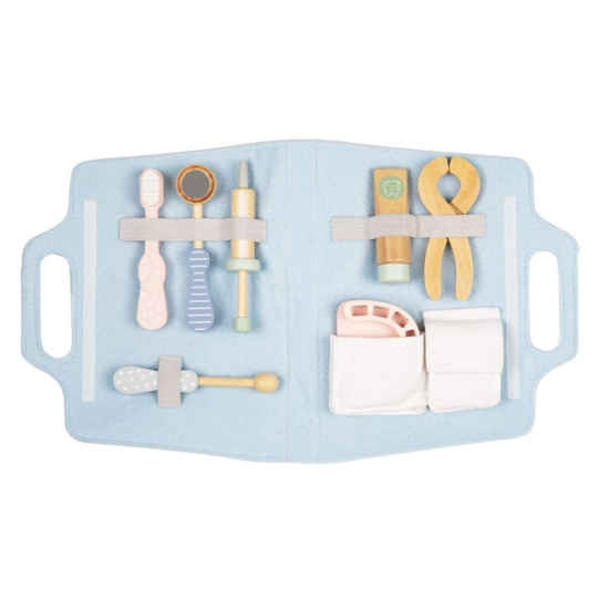 Doktorský kufřík (brašna) pro děti s vybavením pro malé zubaře je originální hračkou, se kterou se děti seznámí nejen se svými zoubky, ale i co obnáší profese zubaře. V roli zubaře nebo zubařky si děti vyzkouší vrtání zkažených zubů i jejich trhání. Na této hračce můžete svým dětem předvést, jak se správně čistí zoubky a jak to dopadá, když se ústní hygiena zanedbá. Pro snadný úklid i přenášení je sada uložena v praktické modré brašně..