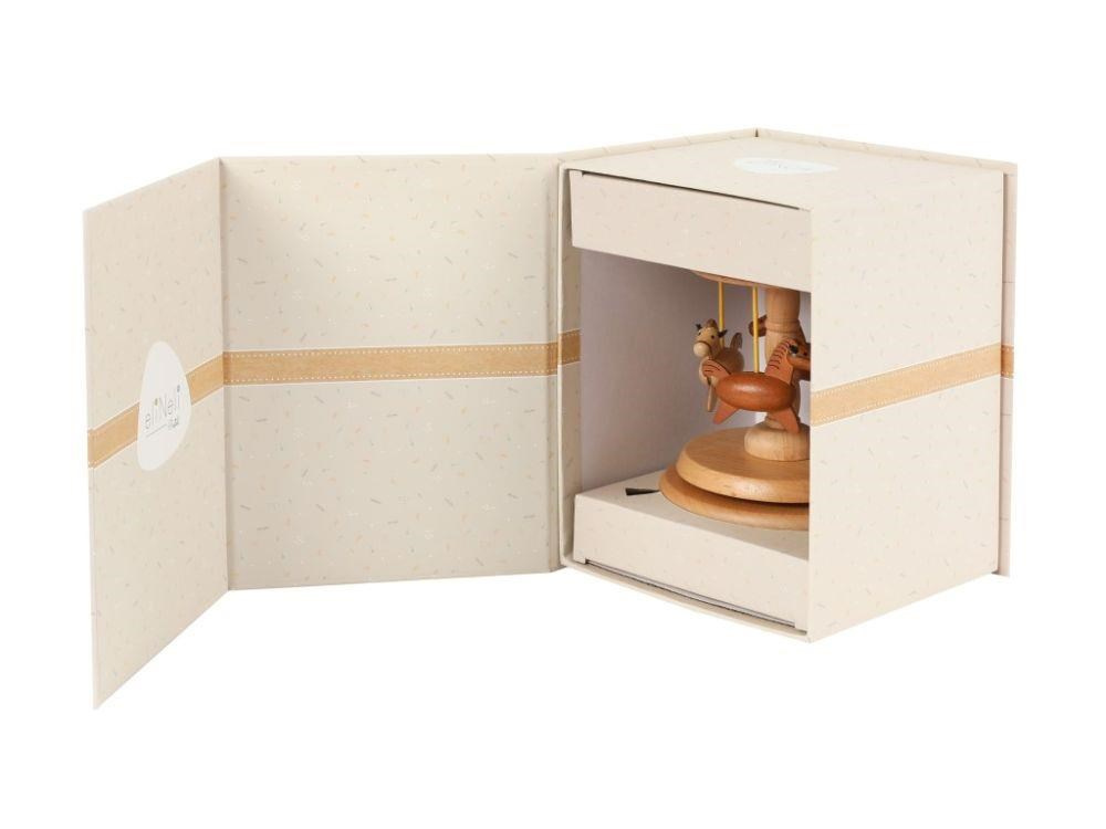 Dřevěná hrací skříňka s koníky je hudební hračkou i krásnou dekorací. Hrající kolotoč s koníky, kteří se točí dokolečka, je vyrobený z přírodního dřeva, jeho povrch je dohladka opracovaný, příjemný na dotek. Dřevěná skříňka potěší každou malou i velkou milovnici koní, je krásnou dekorací na polici, stůl, krásným dárkem k jakékoliv příležitosti..