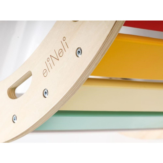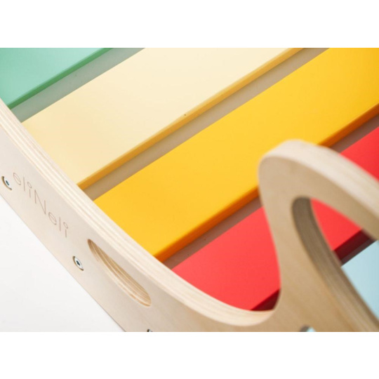 Vylepšená multifunkční dřevěná houpačka 5v1, s deskami ve svěžích fresh barvách, je zábavnou hračkou pro děti, kterou využijí při pohybových aktivitách i při hře. Montessori houpačka umožní dětem příjemně se pohoupat, skvěle poslouží jako prolézačka, skluzavka, skrýš, most, stolička nebo prodejní pultík při hře na obchod. Houpačka přirozeným způsobem rozvíjí motorické dovednosti a je vhodná pro děti již od 1 roku..