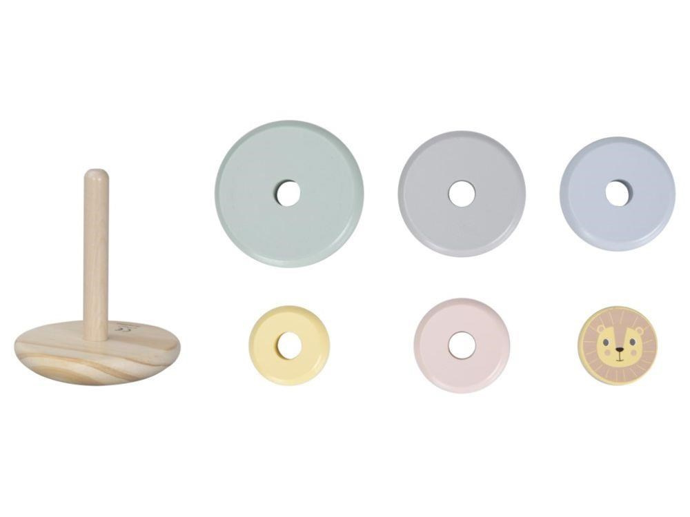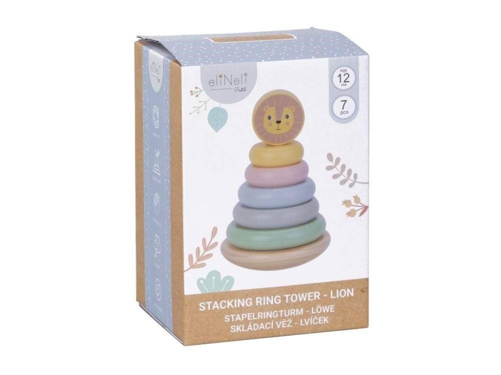 Skládací věž (pyramida) je oblíbenou dřevěnou hračkou, která nesmí chybět v žádném dětském království. Skládací věž s kroužky v jemných pastelových barvách a lvíčkem zdokonaluje jemnou motoriku, koordinaci očí a rukou, logické myšlení, učí děti poznat rozdíl mezi větší a menší, soustředit se a trpělivosti..