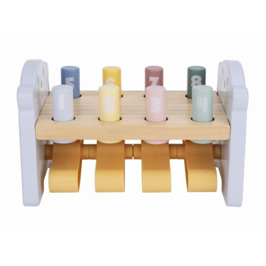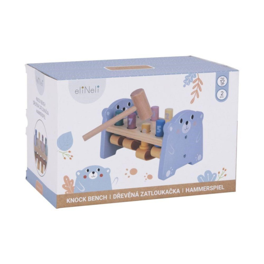 Zatloukačka pro děti je klasickou dřevěnou hračkou, která potěší každé dítko. Dřevěná zatloukačka v krásných barvách, s roztomilým medvídkem, s očíslovanými válečky a malou vychytávkou rozvíjí dětské dovednosti, naučí děti poznávat barvičky i číslice..