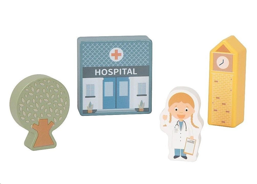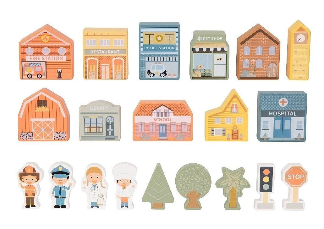 Dřevěné kostky město - domy, postavičky a další doplňky