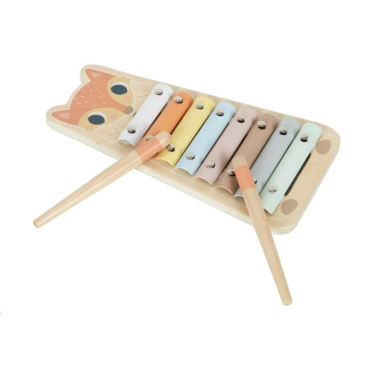 Xylofon pro děti patří mezi klasické hračky, které by neměly chybět v žádném dětském pokojíčku, hracím koutku ani ve školce. Tato hudební hračka v podobě roztomilé lištičky motivuje děti ke hře a zcela jistě probudí v dětech lásku k hudbě, které může přerůst v celoživotní vášeň. Díky dřevěným paličkám, které jsou součástí dřevěného xylofonu, mohou děti do barevných destiček poťukávat a zkoumat, jaké zvuky která barvička vydává. Naučí se poznávat barvičky, rozlišovat různé zvuky. Neutrální pastelové, převážně přírodní, barvy a zrzavá liška propůjčují xylofonu lákavý vzhled a originalitu. Při hře na xylofon děti zdokonalují jemnou motoriku a další dovednosti, stimulují smysly.