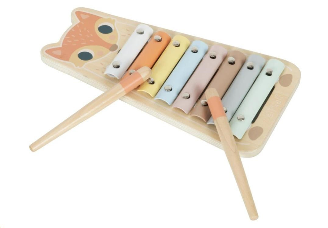 Xylofon pro děti patří mezi klasické hračky, které by neměly chybět v žádném dětském pokojíčku, hracím koutku ani ve školce. Tato hudební hračka v podobě roztomilé lištičky motivuje děti ke hře a zcela jistě probudí v dětech lásku k hudbě, které může přerůst v celoživotní vášeň. Díky dřevěným paličkám, které jsou součástí dřevěného xylofonu, mohou děti do barevných destiček poťukávat a zkoumat, jaké zvuky která barvička vydává. Naučí se poznávat barvičky, rozlišovat různé zvuky. Neutrální pastelové, převážně přírodní, barvy a zrzavá liška propůjčují xylofonu lákavý vzhled a originalitu. Při hře na xylofon děti zdokonalují jemnou motoriku a další dovednosti, stimulují smysly.