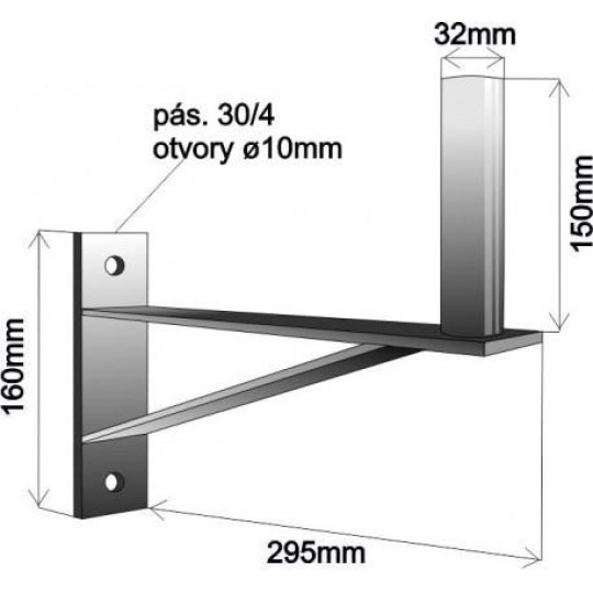 Držák antény na zeď se vzpěrou, galvanický zinek, délka 29cm