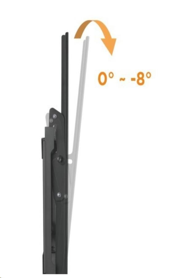- Volně sklopitelná konstrukce pro jednoduchou změnu náklonu TV v úhlu 0°~-8°