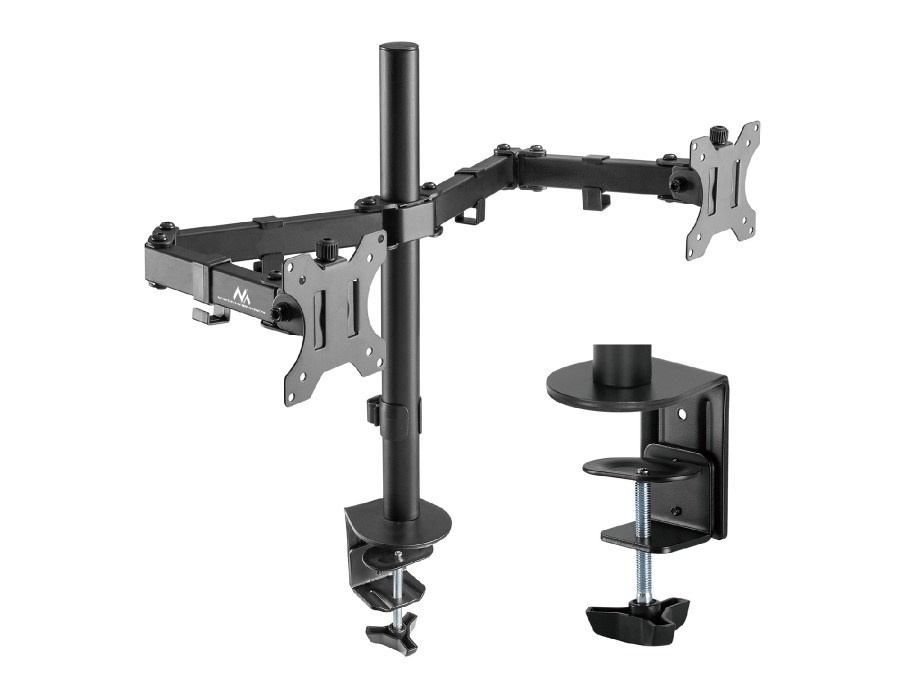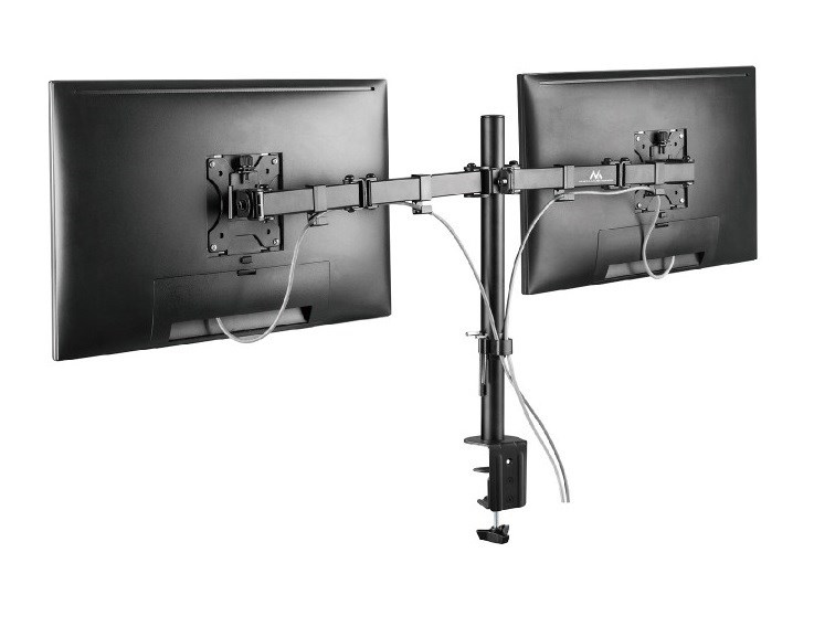 Držák na 2 monitory Fiber Mounts M8C84 Držák s uchycením na okraj stolu na 2 monitory 15-30", nastavení pozice monitorů, kvalitní konstrukce, VESA standardy 75x75 a 100x100, nosnost 16kg Držák pro zavěšení 2 monitorů a uchycení na okraj stolu. Snadná instalace a nastavení monitorů do požadovaných pozic. Držák podporuje VESA standardy 75x75 a 100x100 a zavěsit můžete monitory s celkovou hmotností až 16kg. Držák má kvalitní konstrukci, zavěšení monitorů je naprosto spolehlivé a bezpečné. Dodáváme včetně instalačního materiálu. Záruka 5 let. Stolní držák na 2 monitory Fiber Mounts M8C84 Technické údaje: nosnost 16kg (2 x 8kg) na monitory s úhlopříčkou 15-30" podpora VESA standardů 75x75 a 100x100 délka stolové tyče 390mm nastavitelná výška ramen otáčení do stran +/- 180° naklápění +/- 45° maximální délka ramen 397mm uchycení na okraj stolu, tloušťka stolové desky 10-88mm robustní kovová konstrukce snadná instalace, pevné a bezpečné zavěšení monitorů úchytky na kabeláž instalační materiál barevné provedení černé záruka 5 let Držák na 2 monitory s uchycením na stůl Fiber Mounts M8C84 Držák M8C84 podporuje VESA standardy: VESA 75x75 VESA 100x100 Držák je vhodný na monitory a displeje s úhlopříčkou 15-30", uchycení držáku je možné na stolové desky o síle 10-88mm. Maximální možné celkové zatížení je 16kg, 2 monitory po 8kg..