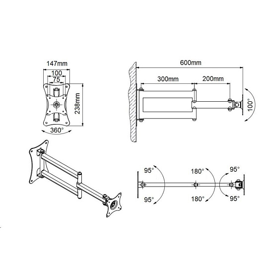 Kompletní specifikace Držák Tv nebo monitoru EDBAK GD26 Profesionální držák na televizi nebo monitor 15-43", otočný, sklopný, délkově nastavitelný, funkce pivot, VESA 75x75 a 100x100, nosnost 15kg Nástěnný držák vynikající kvality a robustní konstrukce pro zavěšení televize nebo monitoru 15-43". Držák podporuje VESA standardy 75x75 a 100x100, je možné zakoupit VESA rozšíření na 200x100 a 200x200. Po zavěšení Tv na držák můžete obrazovku otáčet na obě strany i kolmo ke zdi, naklápět nahoru a dolů, přetočit ji na šířku nebo na výšku. Vzdálenost od zdi lze nastavit v rozmezí 90-600mm. Držáky GD26 můžete zakoupit ve třech barevných variantách: černý, stříbrný nebo bílý. Nosnost držáku je 15kg. Záruka 5 let. Polohovatelný otočný sklopný a délkově nastavitelný držák na LCD LED televizory a monitory - EDBAK GD26 / drzakyastolky.cz Technické údaje: nosnost 15kg podporuje VESA standardy 75x75 a 100x100 možnost rozšíření VESA standardu na 200x100 nebo 200x200 za příplatek doporučená úhlopříčka televizoru nebo monitoru 15-43" nastavitelná vzdálenost od zdi minimální vzdálenost 90mm maximální vzdálenost 600mm funkce PIVOT - možnost otáčení obrazovky kolem osy otáčení do stran +/- 90° náklon +10° až -50° (lze i obráceně, dle montáže držáku) snadná a rychlá montáž profesionální kvalita ocelová konstrukce barva - černá, stříbrná nebo bílá záruka 5 let.