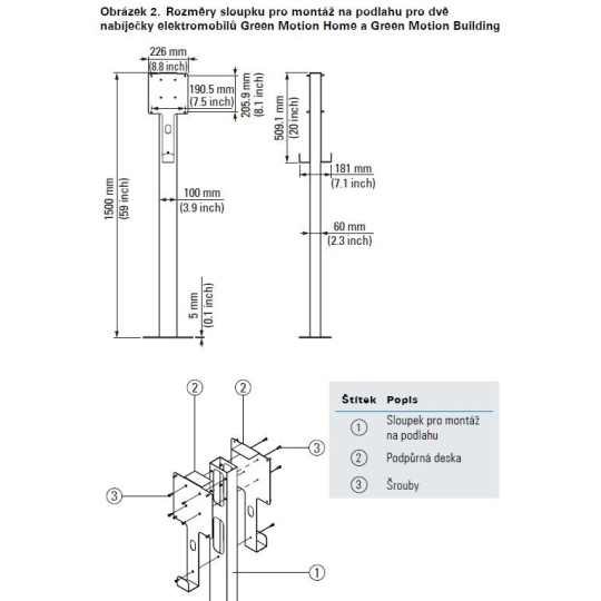 Sloupek pro montáž na podlahu pro jednu nabíječku