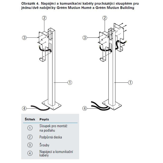 Sloupek pro montáž na podlahu pro jednu nabíječku