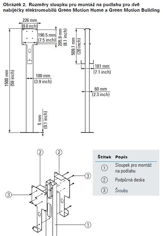 Sloupek pro montáž na podlahu pro jednu nabíječku