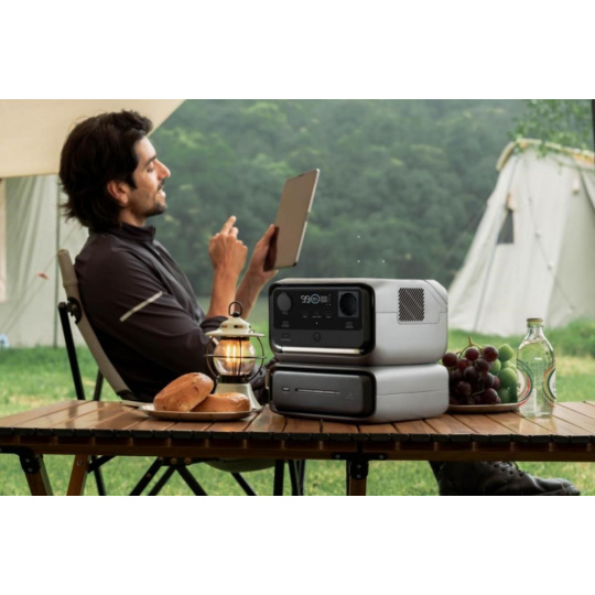 Obě části RIVER 3 Max (RIVER 3 Plus i přídavnou baterii) lze použít i samostatně, stanice je tak přizpůsobitelná aktuálním potřebám. Umožňuje rovněž další rozšíření kapacity, a tedy i prodloužení provozu napájených přístrojů. Místo přídavné baterie EB300 je totiž možné ke stanici připojit přídavnou baterii RIVER 3 Plus EB600 (572 Wh) a celkovou kapacitu stanice tak rozšířit až na 858 Wh.