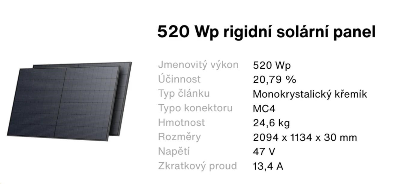 EcoFlow sada dvou 520W rigidních solárních panelů