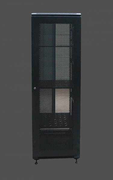 Rozvaděč je standardně vybaven výškově přestavitelnými policemi (3ks pro 42U), panelem se zásuvkami 230V, ventilační jednotkou a sadou spojovacího materiálu. Plechové uzamykatelné dveře na přední i zadní stěně. Odnímatelné boční kryty s možností montáže zámku. Dodáváno v rozloženém stavu.