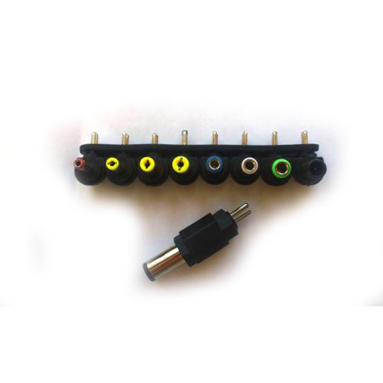 Zdroj má ochranu proti přetížení a zkratu výstupu. Ruční volba výstupního napětí posuvným přepínačem s LED indikací. 9 výměnných koncovek umožňujících připojení naprosté většiny notebooků a netbooků.