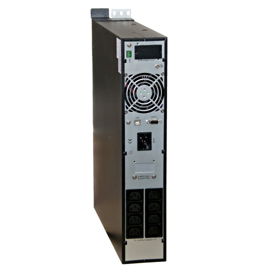 Online záložní zdroj EA902PRT se sinusovým výstupem. Rozměrově určen pro serverové aplikace (montáž do rack 19“). Pro umístění na výšku jsou přibaleny plastové podstavce. Na čelním panelu 3 ovládací tlačítka a informační displej.