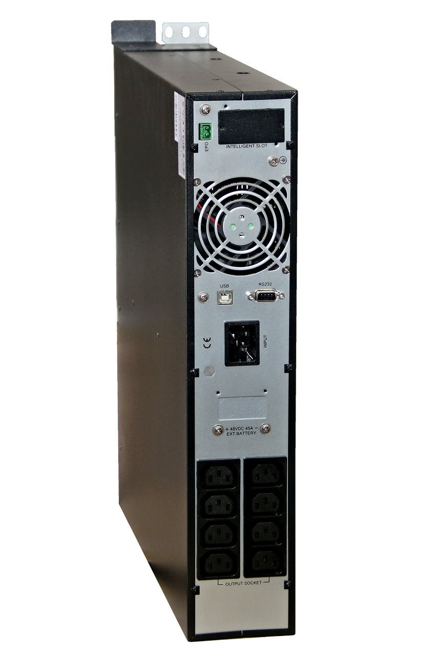 Online záložní zdroj EA902PRT se sinusovým výstupem. Rozměrově určen pro serverové aplikace (montáž do rack 19“). Pro umístění na výšku jsou přibaleny plastové podstavce. Na čelním panelu 3 ovládací tlačítka a informační displej.