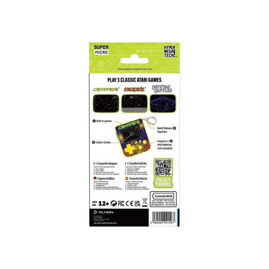 Retro hraní v mikro rozměrech díky klíčence Super Micro Centipede Keychain Gamer od HyperMegaTech! Dostatečně malé, abyste si ji mohli připnout ke klíčům a vzít kamkoli, ale i dostatečně velké, abyste si mohli zahrát. Obsahuje tři skvělé hry od Atari: Centipede, Millipede a Crystal Castles. Dvoupalcová obrazovka RGB umožňuje maximální hratelnost a ovládání hlasitosti na tu správnou míru z ní dělá víc než jen cetku. Vyžaduje 3 baterie AAA (nejsou součástí balení).