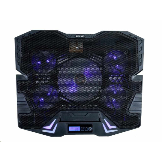 Herní polohovatelný chladící podstavec pro notebooky do velikosti 15.6". 1x 120 mm a 4x 60 mm ventilátor. 2x USB 2.0. Regulace rychlosti otáček ventilátoru, displej.