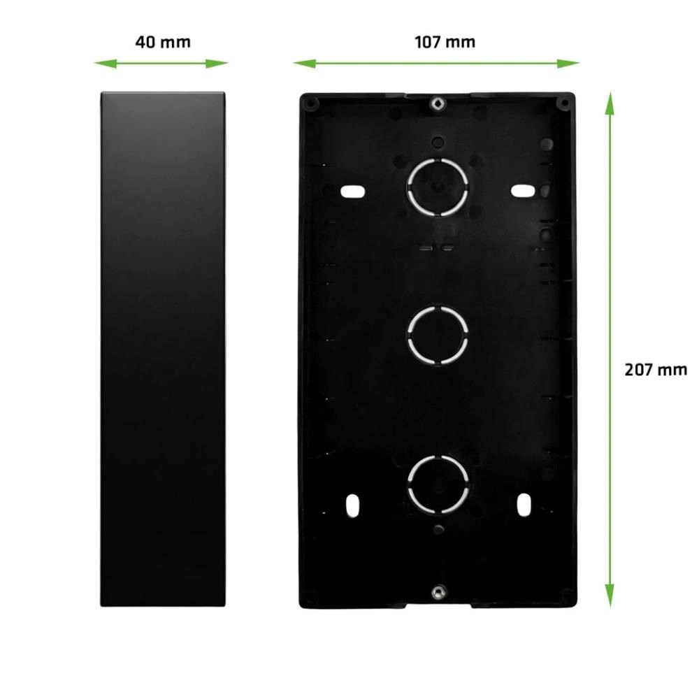 Venkovní panel lze instalovat zapuštěně pomocí přiložené instalační krabice, nebo povrchově s využitím montážního boxu EVOLVEO MSB. Díky tomu je systém vhodný jak pro novostavby, tak pro dodatečnou instalaci bez zásadních stavebních úprav.