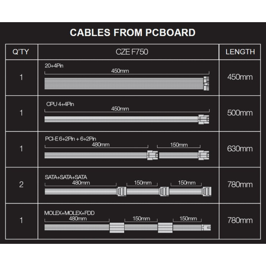 • PCI-E (6+2) +(6+2)pin (480+150mm)