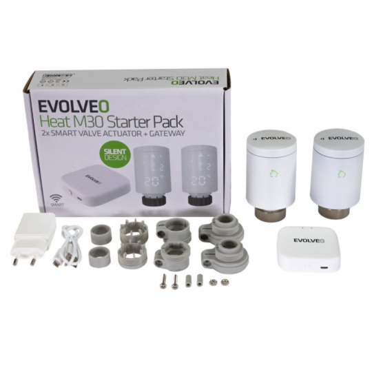 EVOLVEO Heat M30 Starter Pack, 2× chytrá termostatická hlavice na radiátor & centrální jednotka