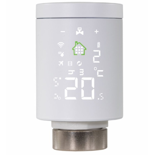 Chytrá bezdrátová termostatická hlavice na radiátor, set obsahuje dva kusy + centrální Wi-Fi jednotku, ovládání přes aplikaci Android/iOS v češtině, white paper LED display s dotykovým ovládáním, kompatibilní s Google Assistant a Amazon Alexa, denní a týdenní plánování, připojení na závit M30 a kompatibilní s ventily RA, RAV, RAVL