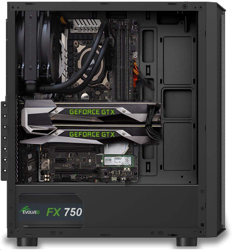 Herní ATX midi tower s instalovanými 4x RGB rainbow 120 mm ventilátory, které se ovládájí pomocí LED tlačítka na horní straně ovládacího panelu. Čelní mřížka přes celý přední kryt zajišťuje efektivní proudění vzduch. Levá strana skříně obsahuje bočnici z tvrzeného skla. Skříň je určená pro základní desky podporující platformu Intel i AMD. Mimo formátu ATX je kompatibilní i s formátem Micro ATXa Mini ITX. Napájecí zdroj se umísťuje do dolní části skříně. Spodní mřížka je osazena vysouvacím prachovým filtrem, horní prachový filter je uchycený magnety a je odnímatelný.