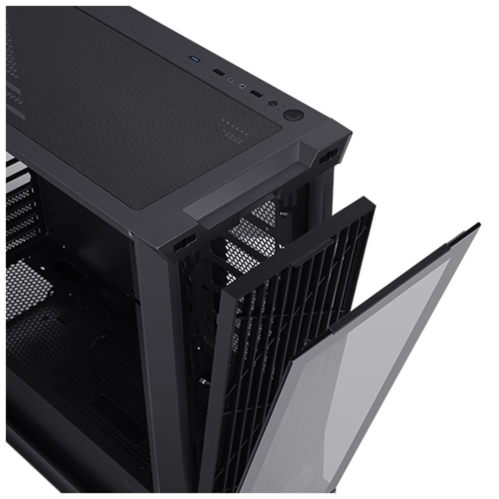 Počítačová skříň - ATX, mATX (Micro ATX) a mITX (mini ITX), volitelný přední panel, balení obsahuje skleněný přední panel (temperované sklo) a přední panel s mřížkou, 2x 3,5", 3x 2,5", 2x USB 2.0, 1x USB 3.0, vstup na sluchátka/mikrofon, 4x 120mm ARGB ventilátor, chladič CPU 164mm, grafická karta 280/390mm (390mm při demontáži HDD rámečku), bez zdroje, bočnice temperované sklo