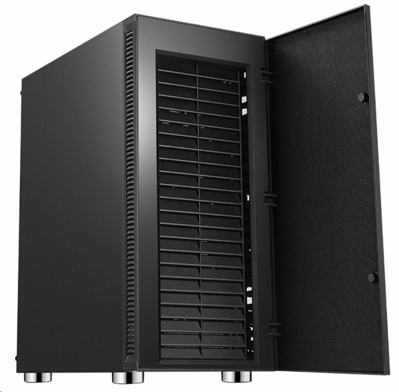 Odhlučněná ATX midi tower. Skříň je určená pro základní desky podporující platformu Intel i AMD. Mimo formátu ATX je kompatibilní i s formátem Micro ATX a Mini ITX. Napájecí zdroj se umísťuje do dolní části skříně. Spodní mřížka je osazena vysouvacím prachovým filtrem. Součástí jsou dva tiché ventilátory pro lepší airflow.