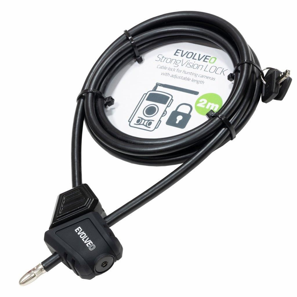 Lanový zámek je ideální pro upevnění a zabezpečení fotopastí Evolveo StrongVision WiFi a StrongVision PRO. Lanko se protáhne připravenými otvory v zadní části fotopasti nebo kovového krytu. Lanko se pak zkrátí na požadovanou délku a pomocí zámku zajistí. Zámek má pogumovaný povrch, který jej chrání před povětrnostními vlivy. Zámek lze použít i na další zařízení Evolveo StrongVision ale pouze v kombinaci s kovovým boxem StrongVision MB1. Lanový zámek lze použít i pro jiné aplikace, například uzamčení jízdních kol, zahradního nábytku, motocyklu, skútru, sekačky na trávu nebo nářadí.