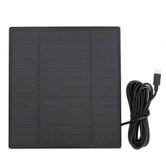 - Solární panel: 5 W, USB-C, kabel 3 m
