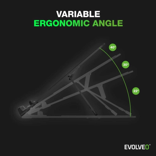 Notebook na tomto hliníkovém podstavci si můžete naklopit do tří pevně daných úhlů – 22°, 30°, nebo 40°. Nejde přitom o čísla vycucaná z prstu, ale o pečlivě promyšlené úhly, z nichž každý odpovídá jinému stylu používání: od pohodového brouzdání po internetu až po soustředěnou práci nebo intenzivní herní seance. Konstrukce podstavce je navržená tak, aby podpořila správné držení těla, ulevila krční páteři a zmírnila únavu očí. Místo shrbeného sezení nad notebookem máte najednou k dispozici stabilní základnu pro práci či hraní, která se vám přizpůsobí.