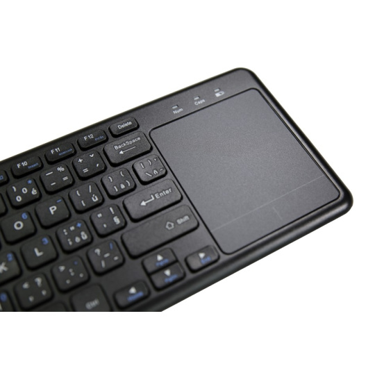 Všestranná 2.4GHz bezdrátová klávesnice s Touchpadem. Ideální pro ovládání Smart televizí, multimediálních center, HTPC počítačů, apod. Můžete také použít s notebookem nebo klasickým PC, pokud chcete dálkově ovládat svůj počítač.