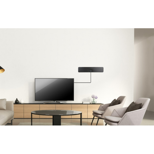Elegantní pokojová anténa pro příjem digitální i analogové TV. Zesilovač antény lze napájet díky USB kabelu dvěma způsoby. Napájení pomocí adaptéru 230V a dále napájení z USB konektoru. Druhý způsob ocení uživatel, který chce sledovat TV např. na NB pomocí USB tuneru. Anténu lze přilepit sado 3M oboustranných pásek na zeď, nábytek, nebo umístit do podstavce.