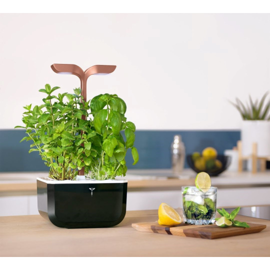 Véritable Exky SMART - Automatický květináč s regulací osvětlení, černá měděná + 2 bylinkové náplně