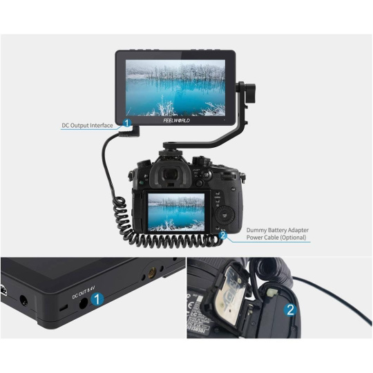 F5 Pro má 4K HDMI vstup a výstup, což mu umožňuje nejen zobrazovat živé signály, ale také je současně odesílat na jiné monitory. Se vstupem USB-C, bateriovou deskou F970, napájecím kitem a výstupem 8.4V DC zajišťuje flexibilní výběr napájecího zdroje.