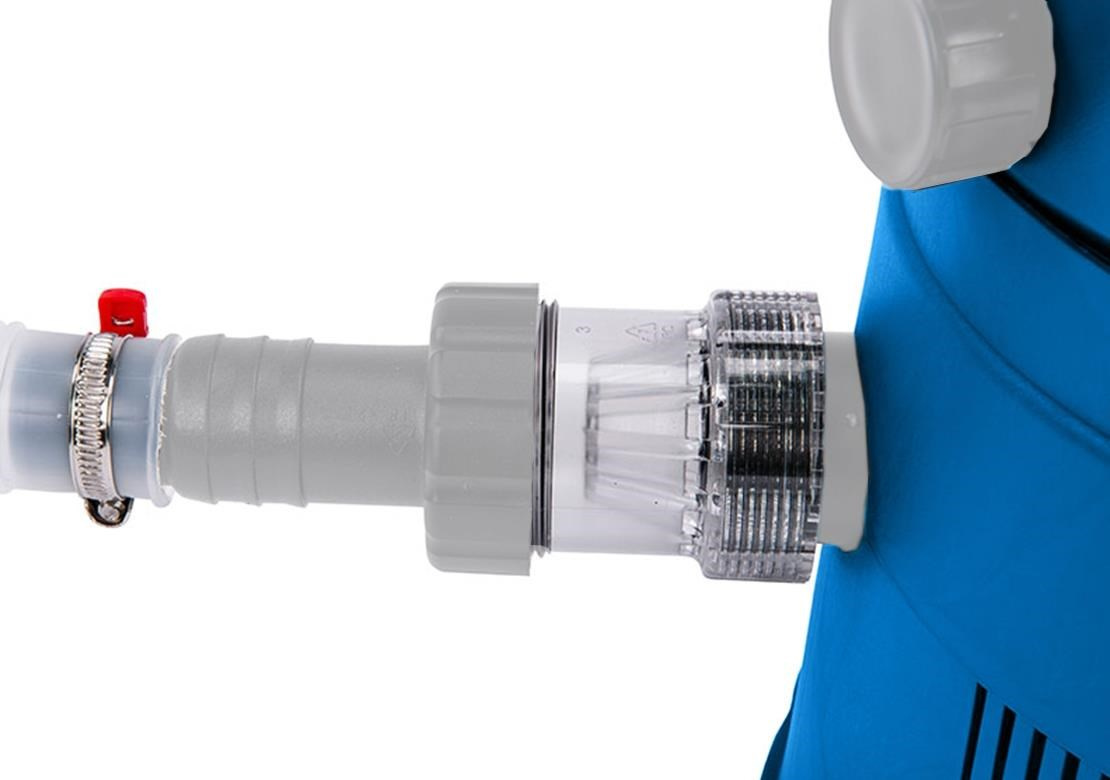 Kromě atraktivního moderního designu potěší také svými kompaktními rozměry, prakticky zabudovaným čerpadlem se sítem hrubých nečistot přímo v těle nádoby. Šesticestný ventil nabízí mimo jiné i odlehčenou polohu pro zimní odstávku.